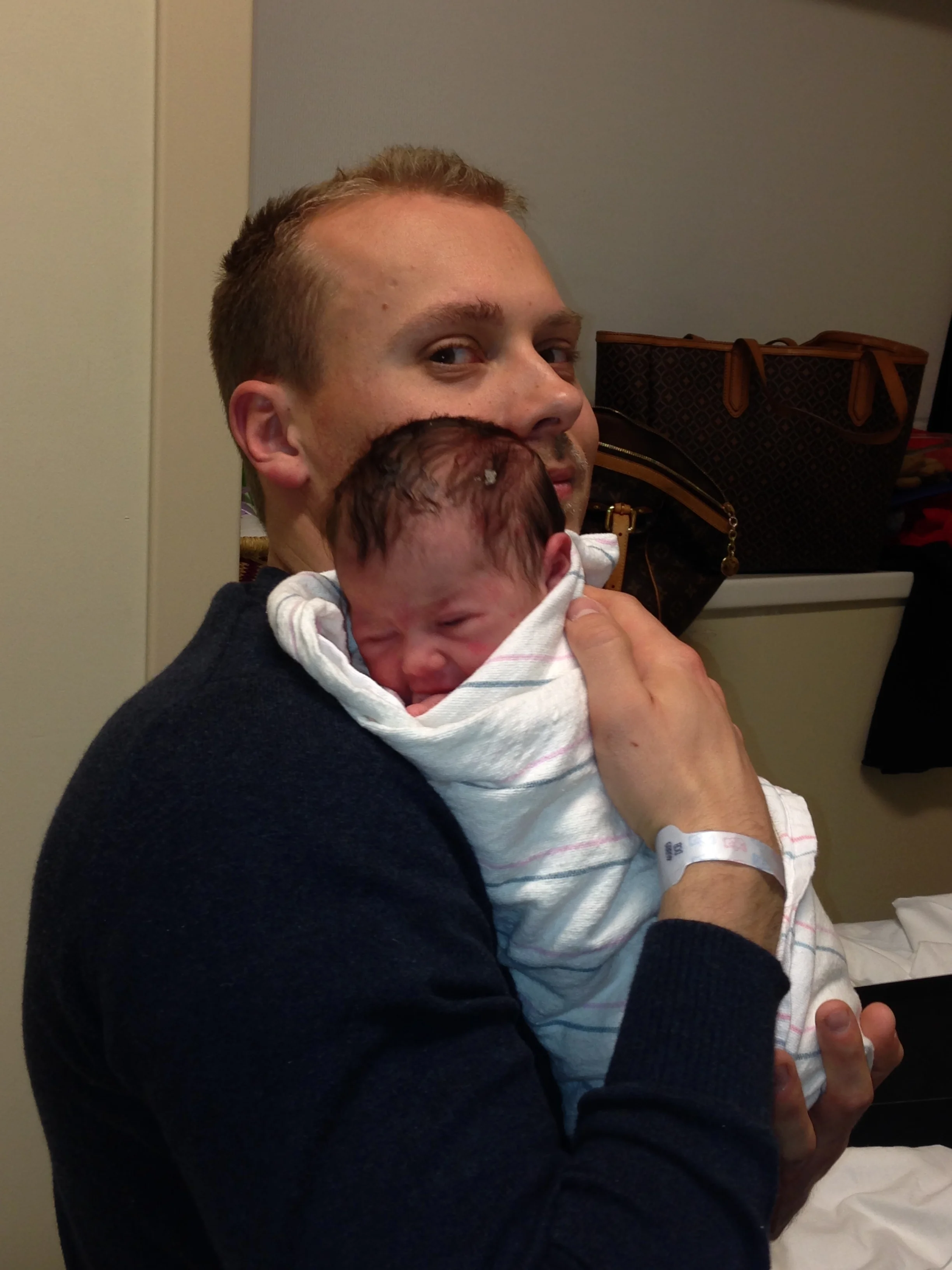 And then there are the partners like my very own whose stoicism knows no bounds. He made it through our first birth and subsequent three days in the hospital without showing an ounce of raw emotion. I knew he was proud because he said he was... when I asked. I knew he was relieved both our baby girl and I were healthy because he said he was... when I asked. I knew he was as nervous as I was because he was biting his nails. He made it through that first drive from the hospital back to our house. He made it up the stairs. It wasn’t until he opened the door to the bedroom of his newborn baby that it finally hit him and tears came to his eyes. I don’t know what happened next, of course.